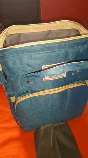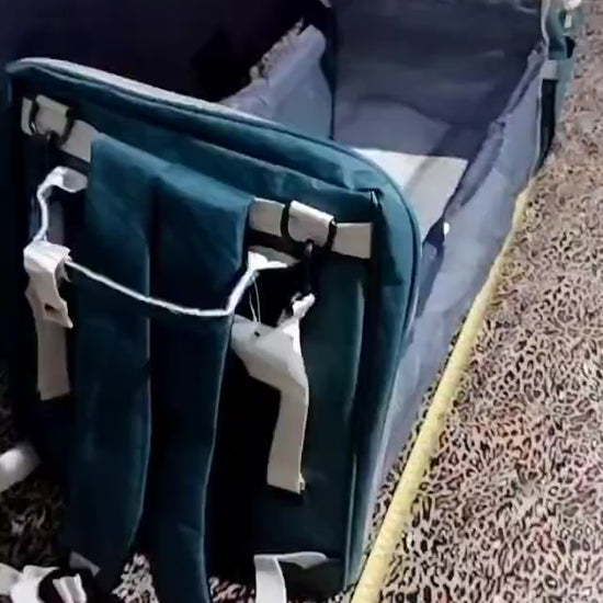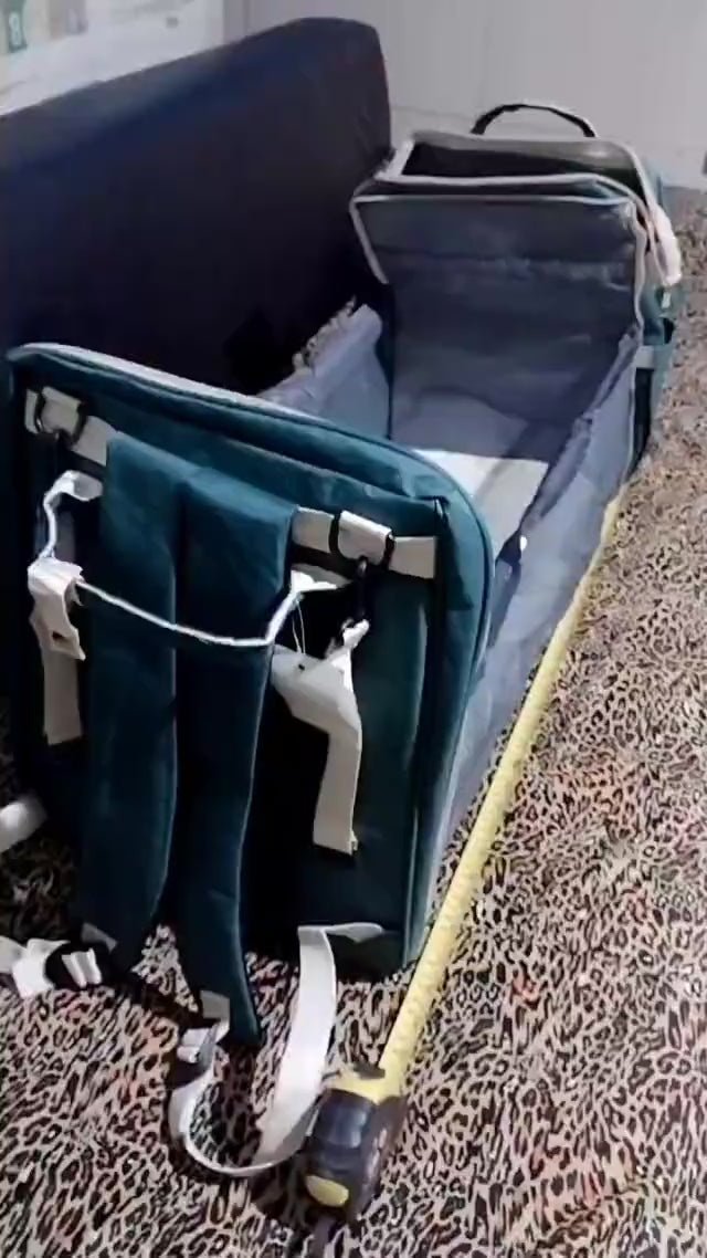 pañalera portátil para mamá con cuna que se despliega en la parte de atrás para cambiar de pañal o dormir a tu bebé
